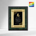 素材:MDF( 木粉圧縮エコ材 ) 製グリーンマーブル柄張仕上げ、金属製デコレーションプレート、B,Cサイズは壁掛け兼用楯足付き ( 特許取得済 )
