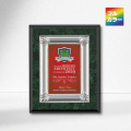 素材:MDF( 木粉圧縮エコ材 ) 製グリーンマーブル柄張仕上げ、金属製デコレーションプレート、B,Cサイズは壁掛け兼用楯足付き ( 特許取得済 )