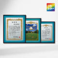 素材:MDF( 木粉圧縮エコ材 ) 製ボカシ塗装仕上げ、アルミプレート付き、B、Cサイズは壁掛け兼用楯足付き ( 特許取得済 )