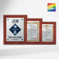 素材:スプルス材面取塗装楯、アルミプレート付き、B、Cサイズは壁掛け兼用楯足付き ( 特許取得済 )