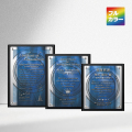 素材:MDF( 木粉圧縮エコ材 ) 製、再生アクリルプレート使用、B、Cサイズは壁掛け兼用楯足付き ( 特許取得済 )