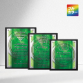 素材:MDF( 木粉圧縮エコ材 ) 製、再生アクリルプレート使用、B、Cサイズは壁掛け兼用楯足付き ( 特許取得済 )