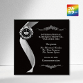 素材:MDF(木粉圧縮エコ材)製黒エポ塗装楯、壁掛け兼用楯足付き(特許取得済)
