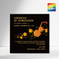素材:MDF(木粉圧縮エコ材)製黒エポ塗装楯、壁掛け兼用楯足付き(特許取得済)