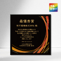 素材:MDF(木粉圧縮エコ材)製黒エポ塗装楯、壁掛け兼用楯足付き(特許取得済)