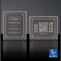 素材:MDF(木粉圧縮エコ材)製メタリックシルバー塗装仕上げ、加工面はアクリル製、Cサイズは壁掛け兼用楯足付き(特許取得済)