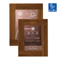 素材:天然銘木材フレーム、彫刻面はブラウンスモークアクリル製、置き掛け両用可能