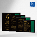 素材:MDF(木粉圧縮エコ材)製黒エポ塗装楯、ピアノ塗装仕上げMDF製天然木材張プレート付き(ピアノ塗装はプレートのみ)、壁掛け兼用楯足付き(特許取得済)