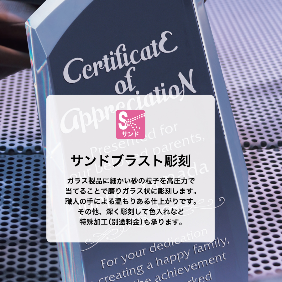 | 製品名: | クリスタルトロフィー サンドブラスト彫刻【A-AK-1789-Twilight】高さ:7.0cm |