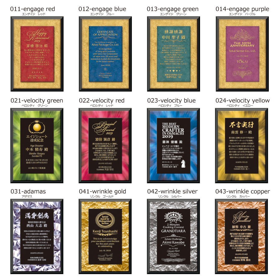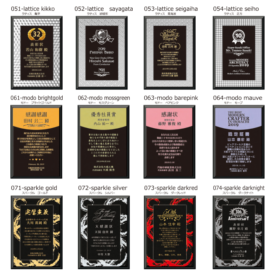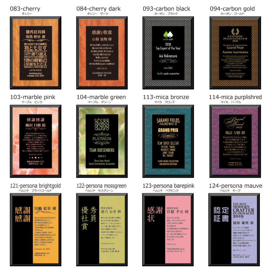 素材:MDF(木粉圧縮エコ材)製、黒張面取仕上げ、再生アクリルプレート使用、C、Dサイズは壁掛け兼用楯足付き(特許取得済)