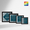 素材:MDF(木粉圧縮エコ材)製黒エポ塗装楯、ステンレス製シルバープレート付き、プレートの柄はオーバーレイドプリント、壁掛け兼用楯足付き(特許取得済)