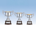 口径:125mm カップ:真鍮製(内:本金メッキ仕上げ、外:代用ロジウムメッキ仕上げ) 台座:木製