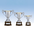 口径:145mm カップ:真鍮製(内:本金メッキ仕上げ、外:代用ロジウムメッキ仕上げ) 台座:木製