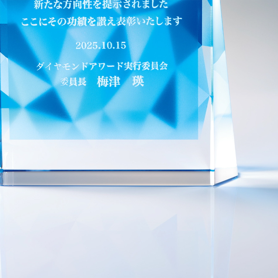 | 製品名: | 光学ガラス製トロフィー フルカラー印刷【MSF.101_Bサイズ】高さ:16.0cm《デザイン確定後 通常10営業日前後で出荷》 |