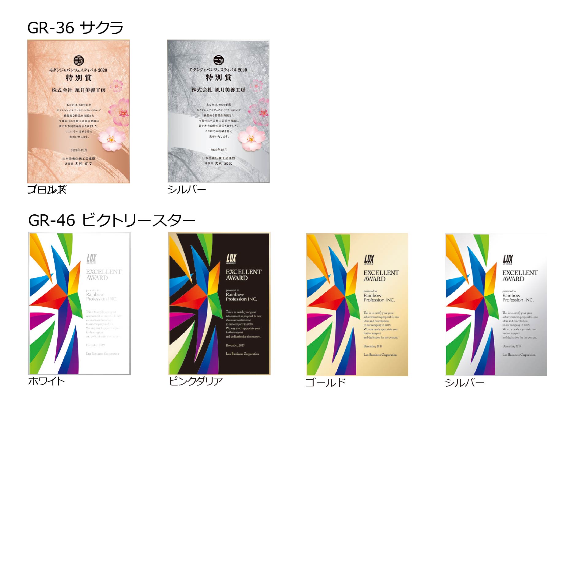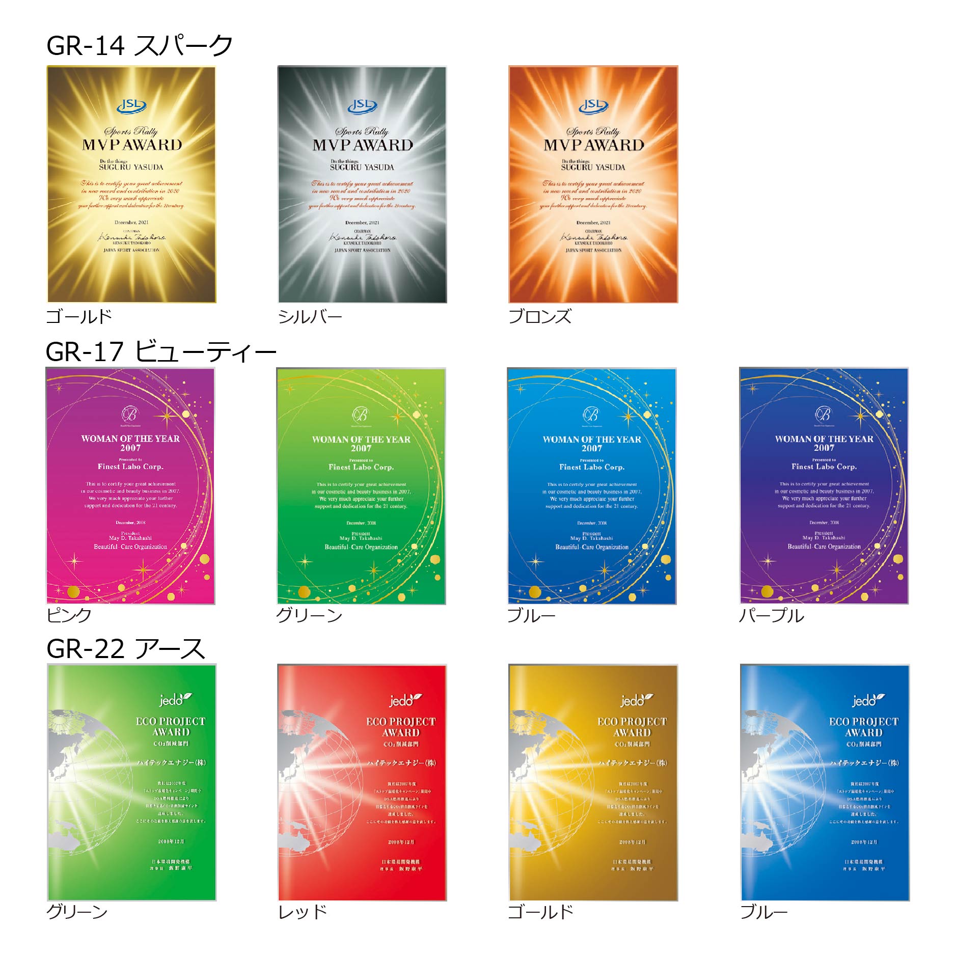 同じ形のトロフィー バリエーション一覧
