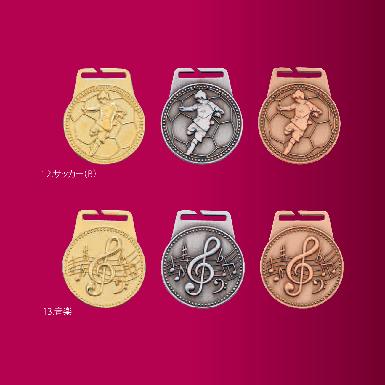 01)ビクトリー, 02)ビーナス, 03)鳳凰, 04)野球(A), 05)サッカー(A), 06)マラソン, 07)空手, 08)バレーボール, 09)水泳, 10)剣道, 11)野球(B), 12)サッカー(B), 13)音楽,