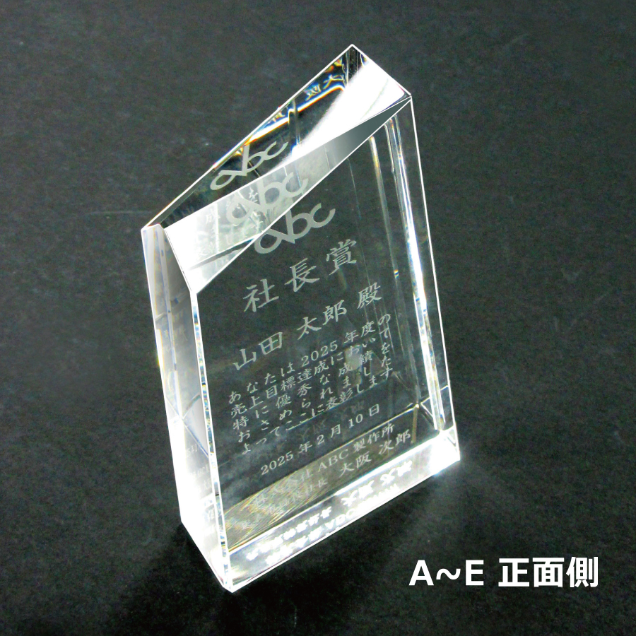 クリスタルトロフィー 内部レーザー彫刻(旧型番:O-SHD-7036)【O-SHD-7096_Hサイズ】高さ:9.0cm 幅:5.5cm《デザイン確定後 通常15営業日前後で出荷》