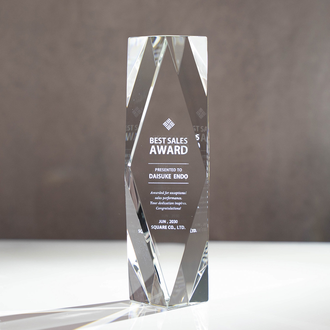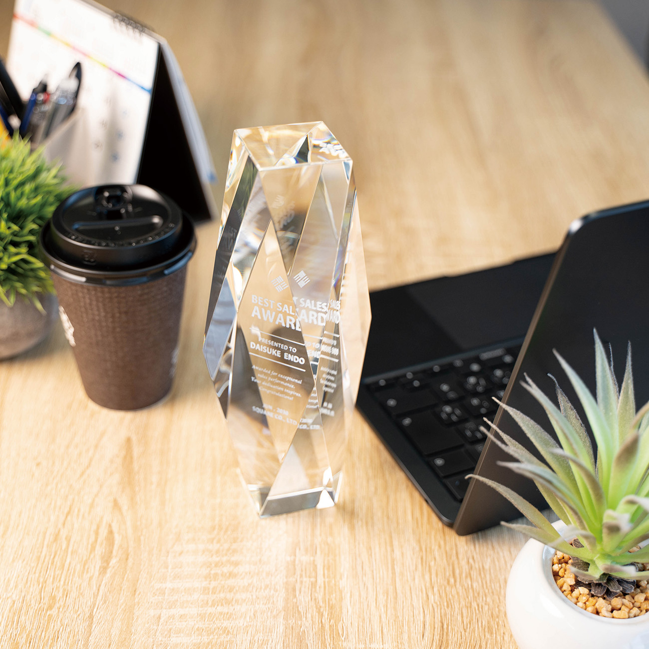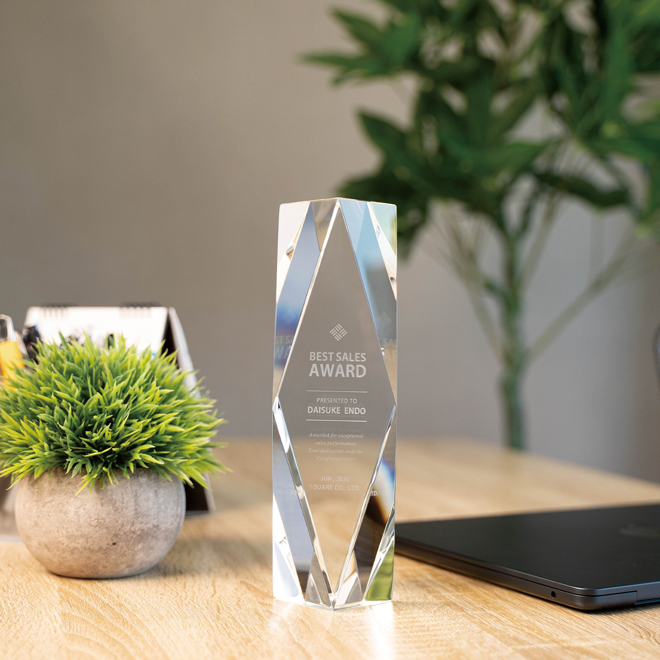 【最短 翌営業日 出荷】セミオーダー高級クリスタルトロフィー クリスタルの中にロゴや文字を加工する2D加工 高さ:20.0cm 幅:6.0cm 圧倒的な存在感! 本格的なガラストロフィーを低価格で販売。短納期激安通販 社内表彰、企業表彰、各種大会、コンペ優勝者、受賞者の表彰に最適。XC-0103C