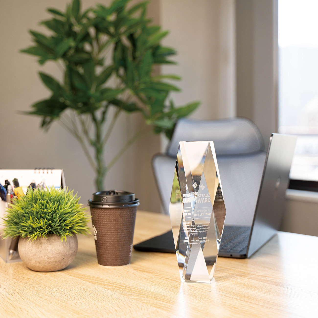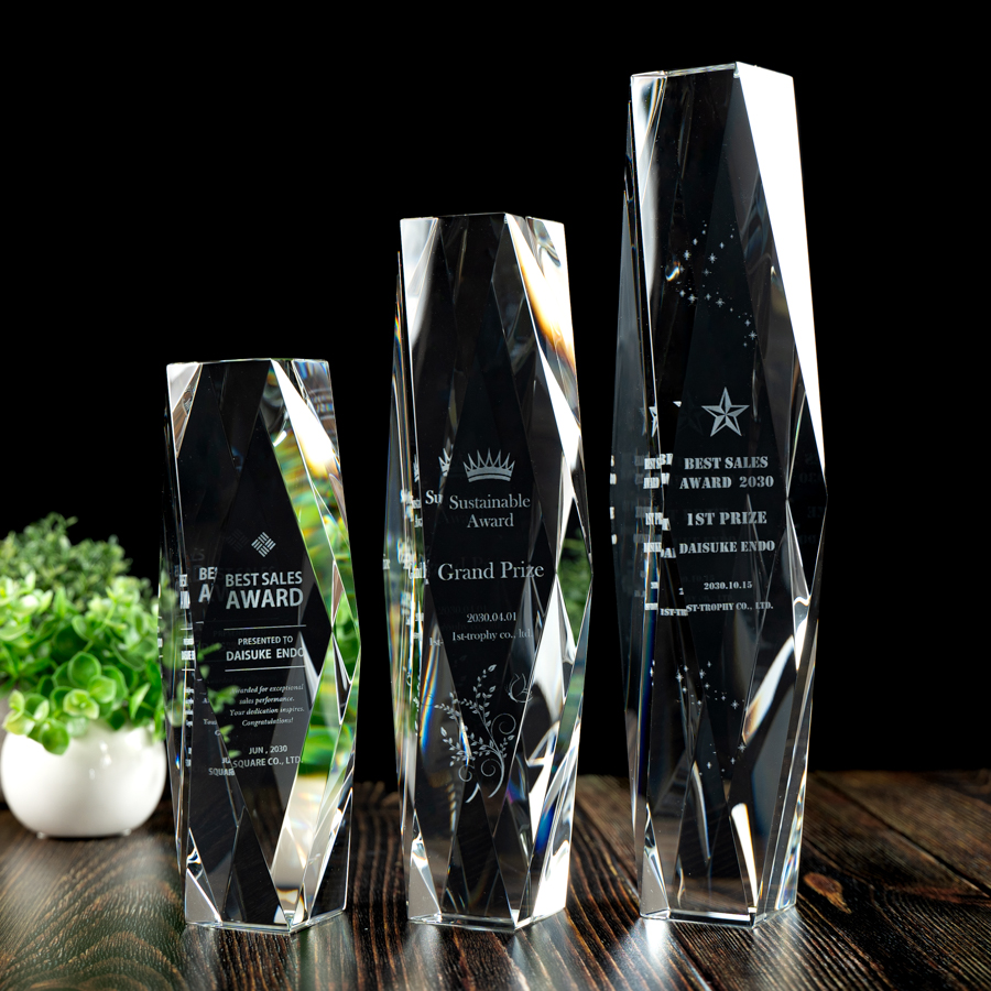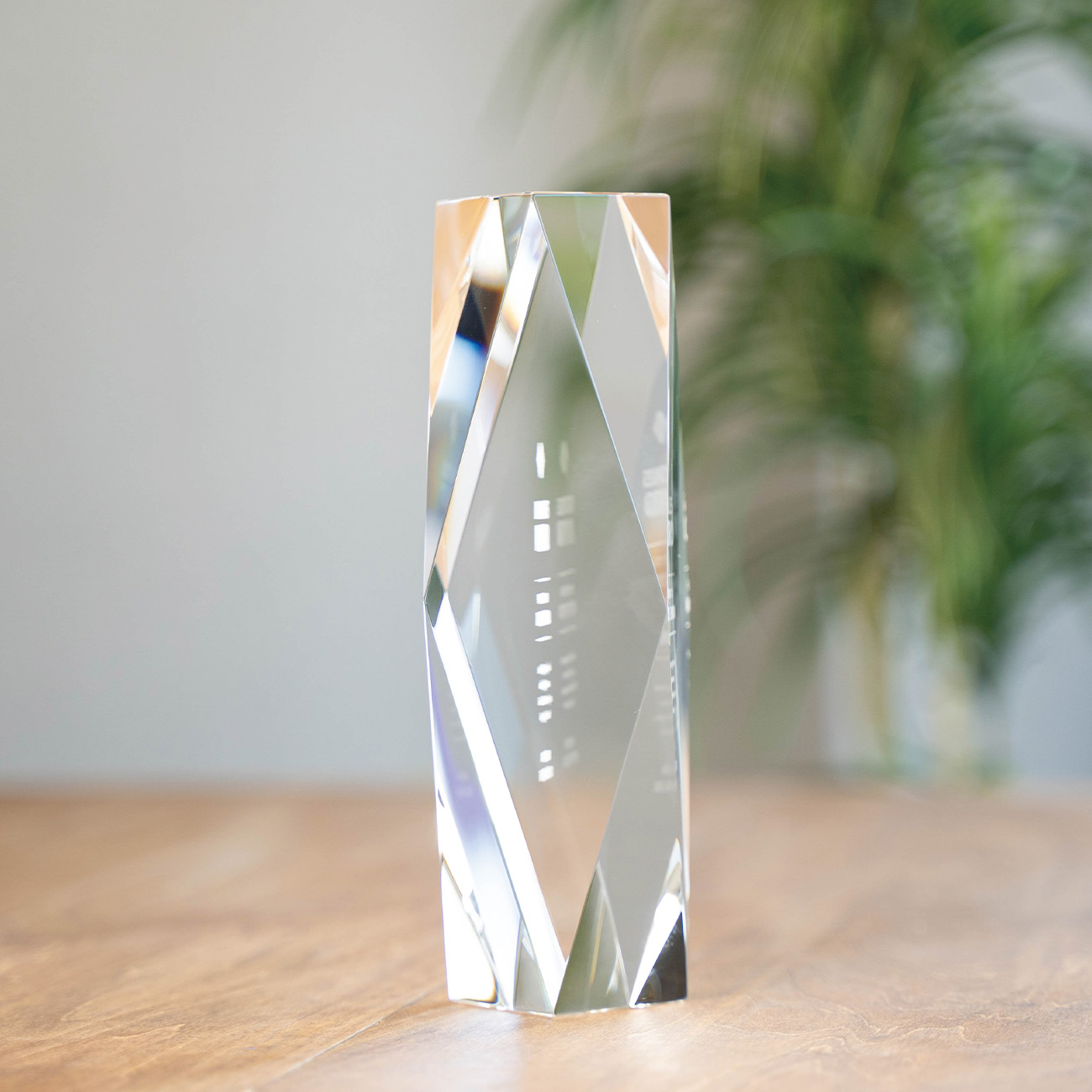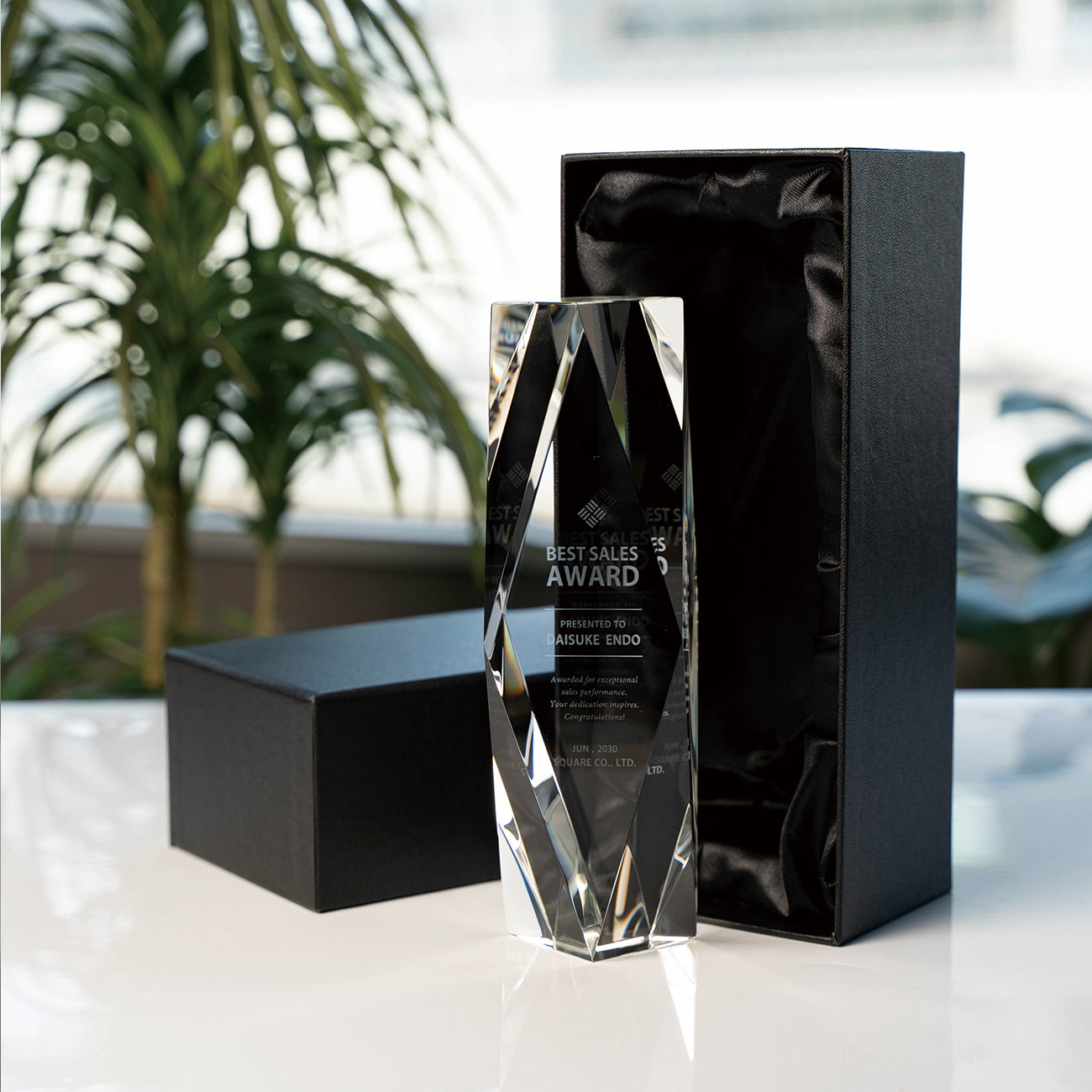 【最短 翌営業日 出荷】セミオーダー高級クリスタルトロフィー クリスタルの中にロゴや文字を加工する2D加工 高さ:20.0cm 幅:6.0cm 圧倒的な存在感! 本格的なガラストロフィーを低価格で販売。短納期激安通販 社内表彰、企業表彰、各種大会、コンペ優勝者、受賞者の表彰に最適。XC-0103C
