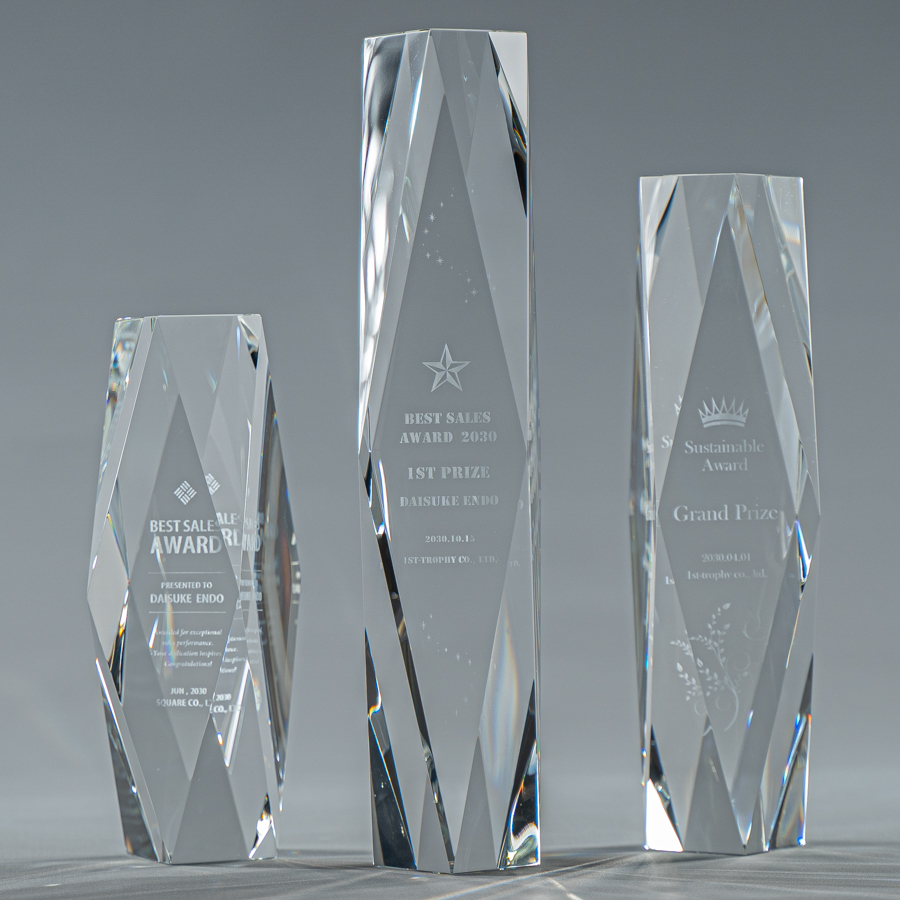 | 製品名: | クリスタルトロフィー 内部レーザー彫刻《XC-L-0103_Cサイズ》(高さ:20.0cm 幅:6.0cm) |