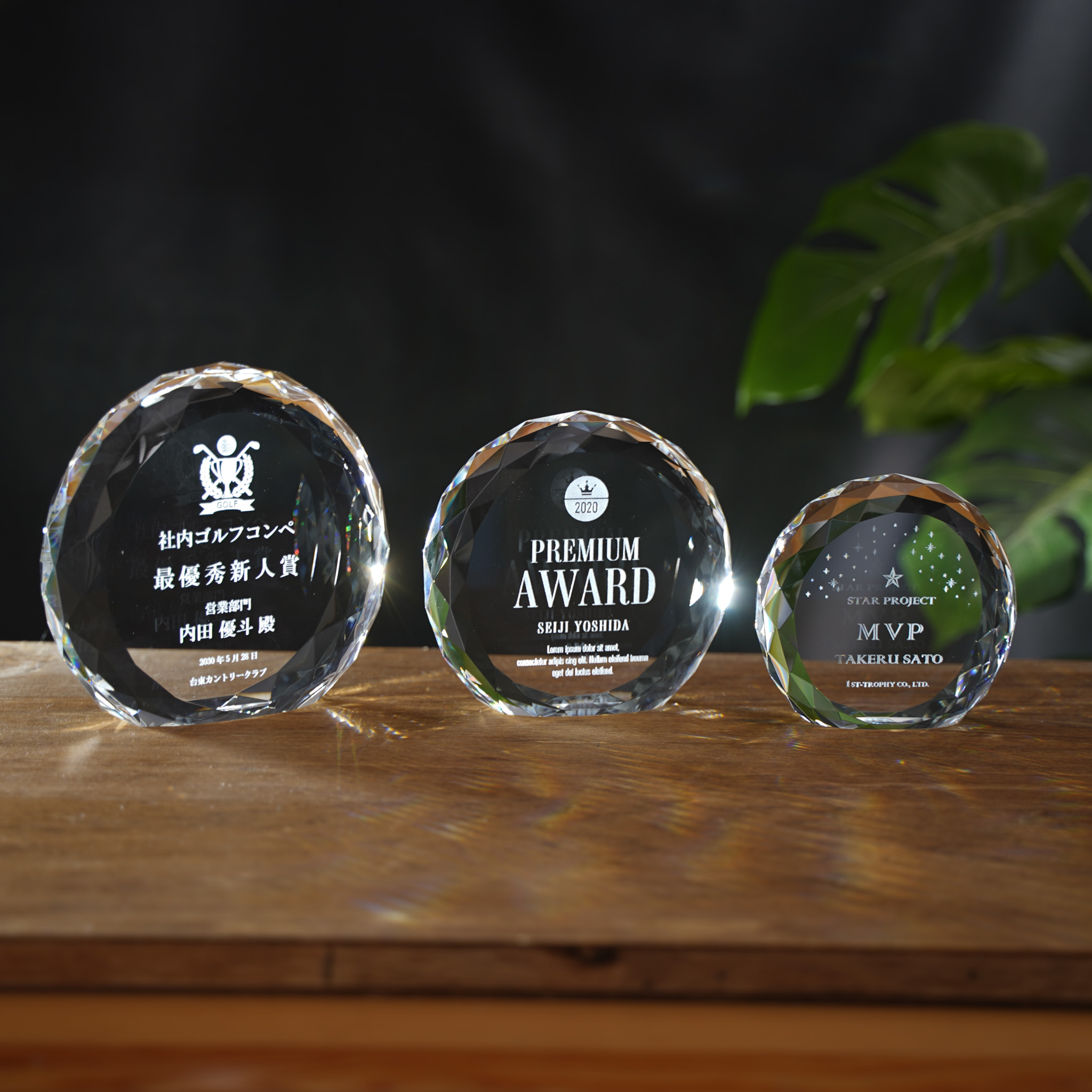 クリスタルトロフィー 内部レーザー彫刻【XC-0111_Aサイズ】高さ:14.5cm 幅:15.4cm《営業日11時までの注文完了>14時までの校了で翌営出荷》