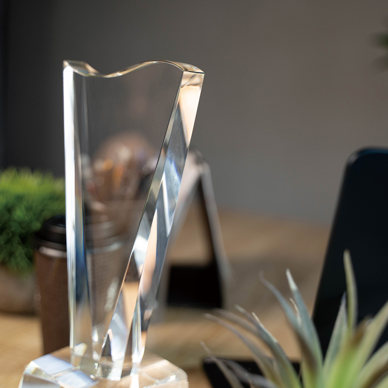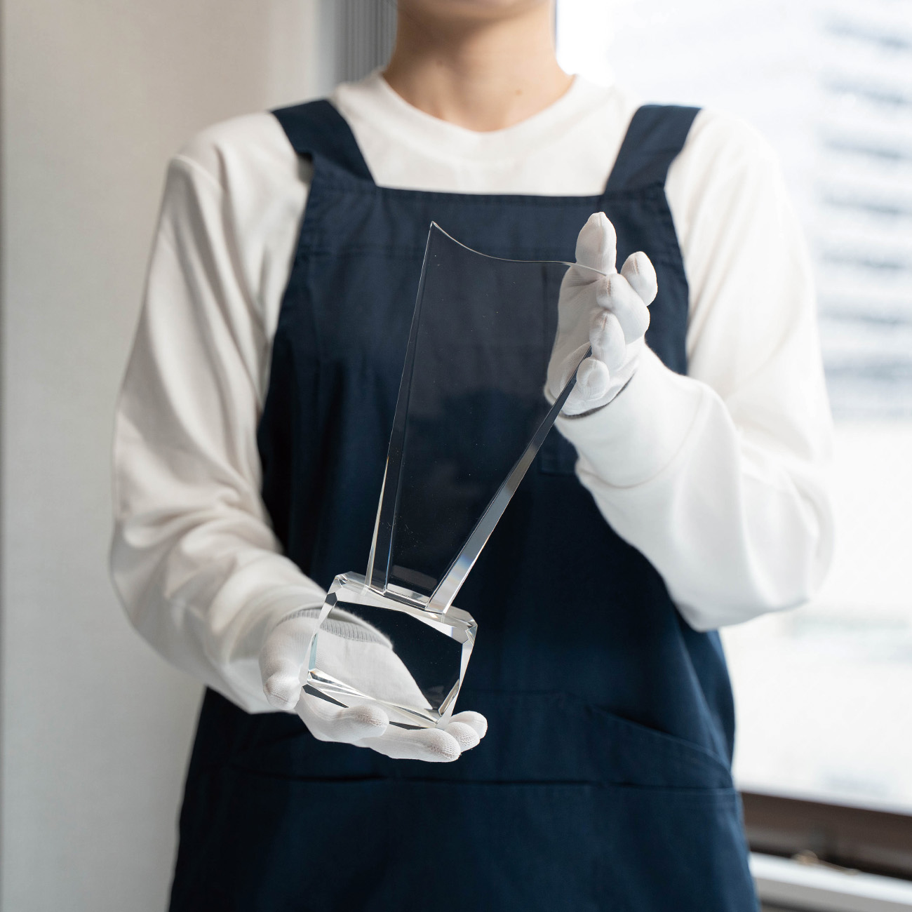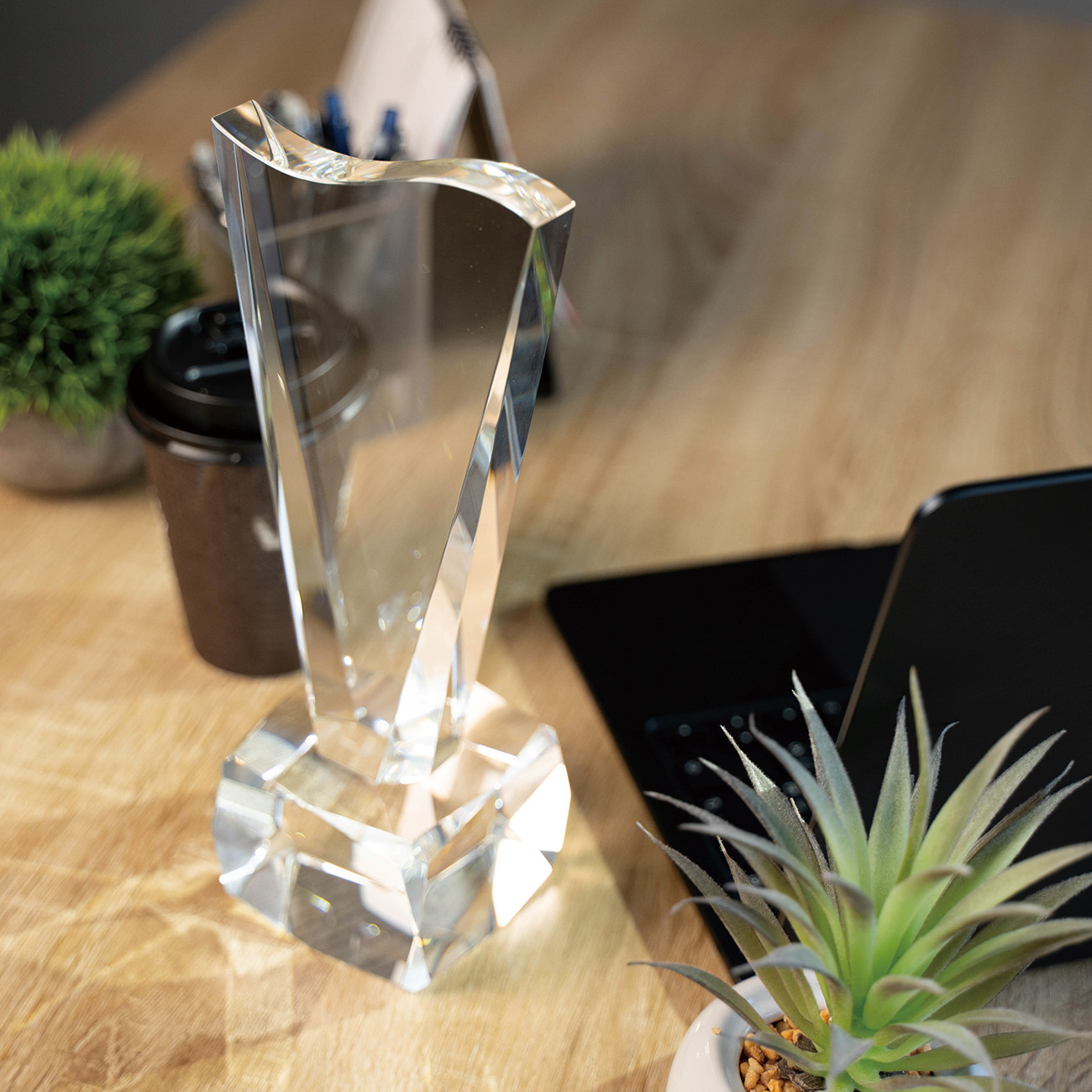 | 製品名: | クリスタルトロフィー 内部レーザー彫刻+プレート《XC-L-0160_Cサイズ》(高さ:24.0cm 幅:9.9cm) |