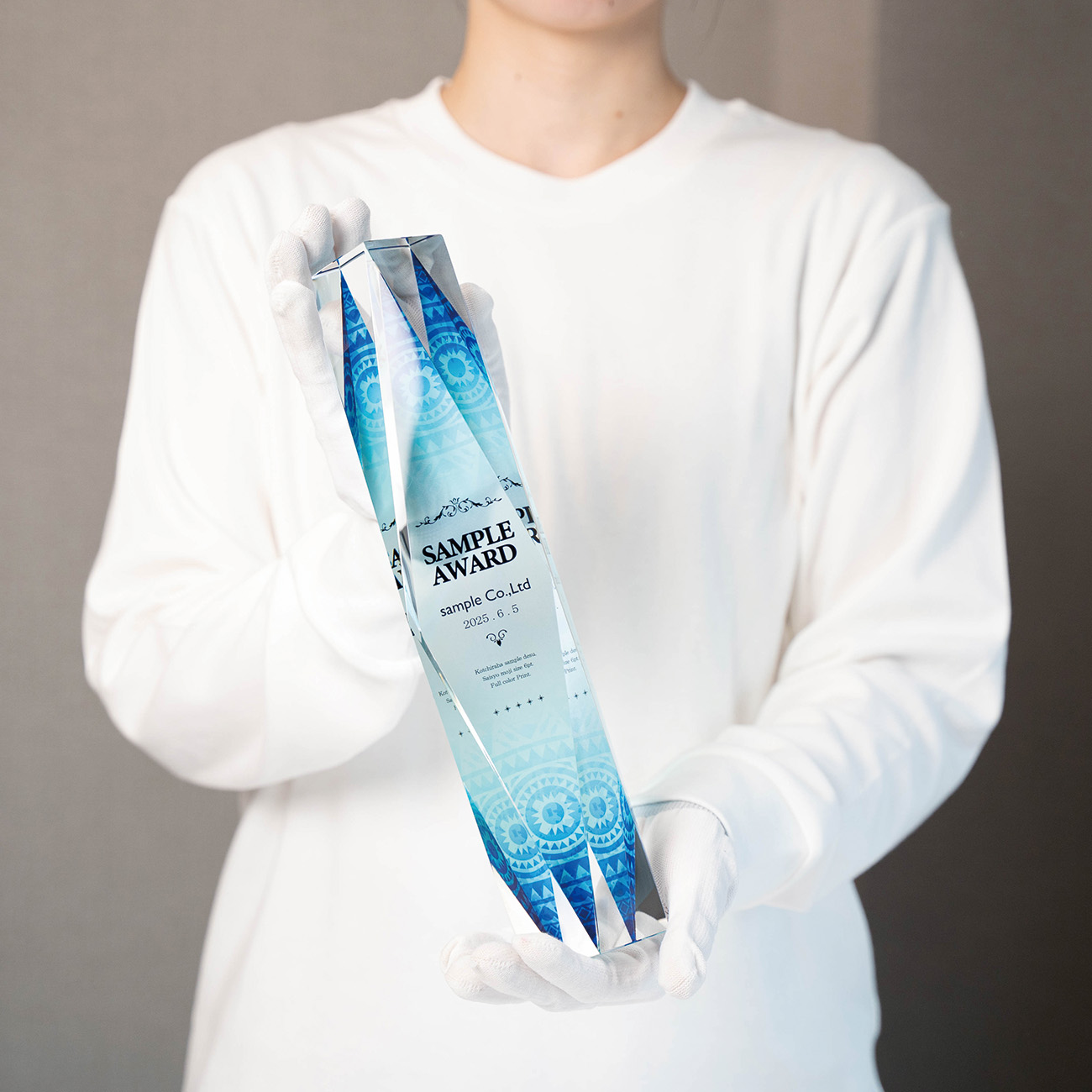 | 製品名: | クリスタルトロフィー フルカラー印刷《XC-C-0103_Aサイズ》(高さ:30.0cm 幅:6.0cm) |