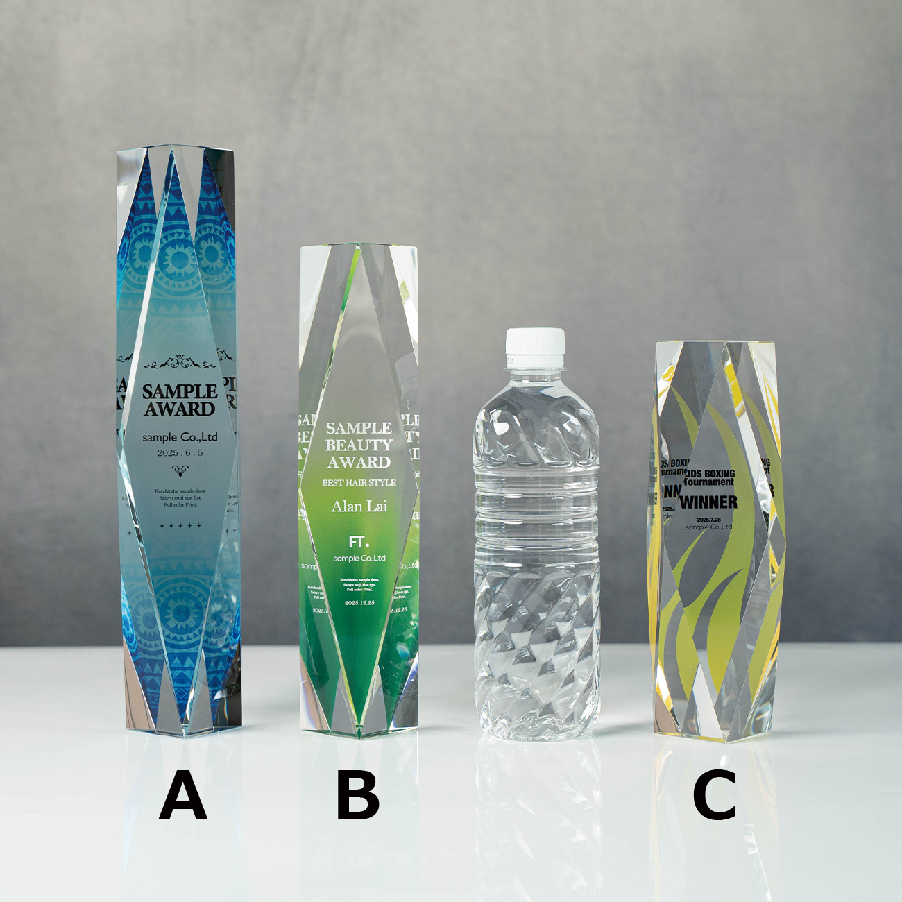 | 製品名: | クリスタルトロフィー フルカラー印刷《XC-C-0103_Cサイズ》(高さ:20.0cm 幅:6.0cm) |