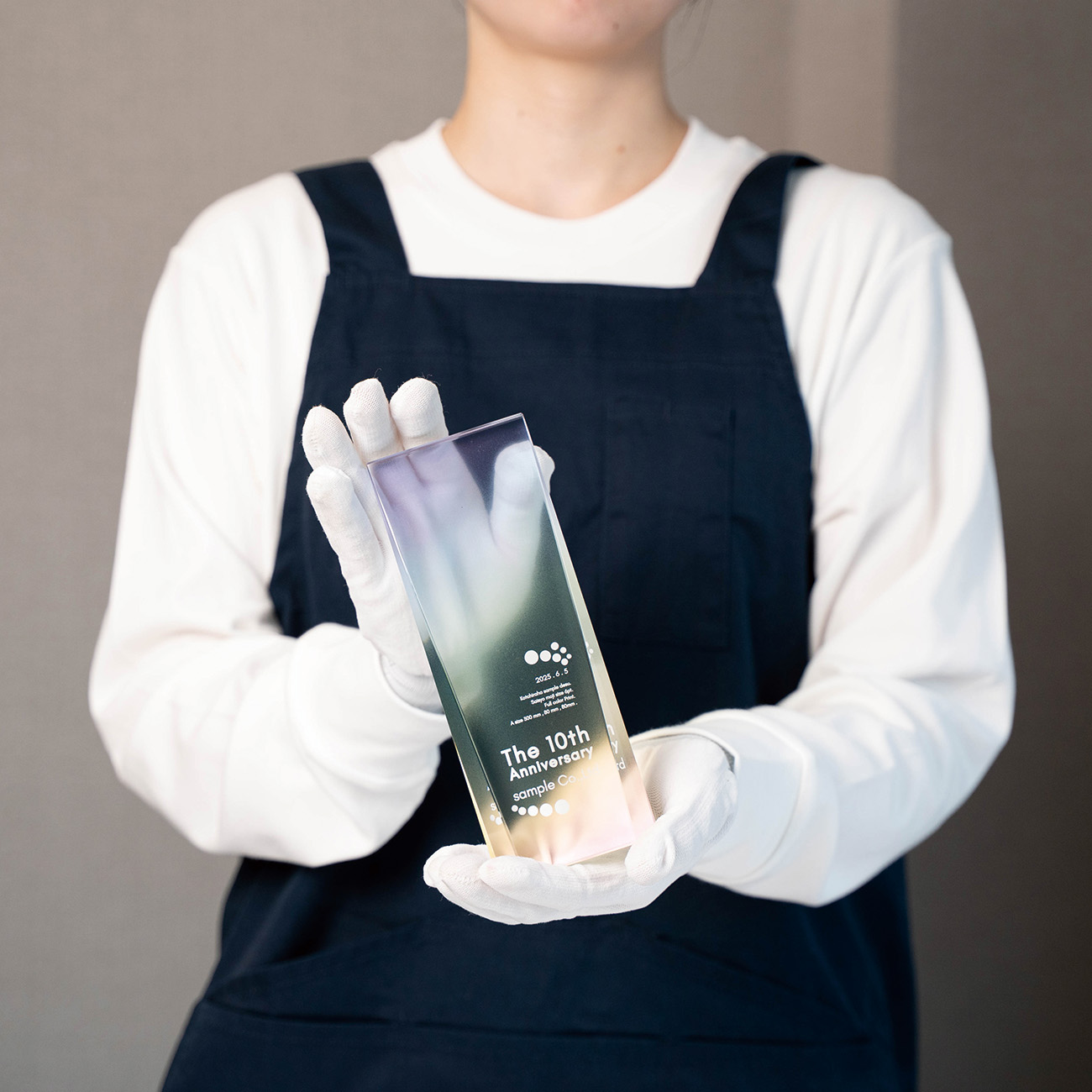 【最短 翌営業日 出荷】セミオーダー高級カラークリスタルトロフィー ガラスにフルカラープリントが可能。高さ:18.0cm 幅:6.5cm 程良いサイズ感! 本格的なガラストロフィーを低価格で販売。短納期激安通販 社内表彰、企業表彰、各種大会、コンペ優勝者、受賞者の表彰に最適。XC-C-0113B