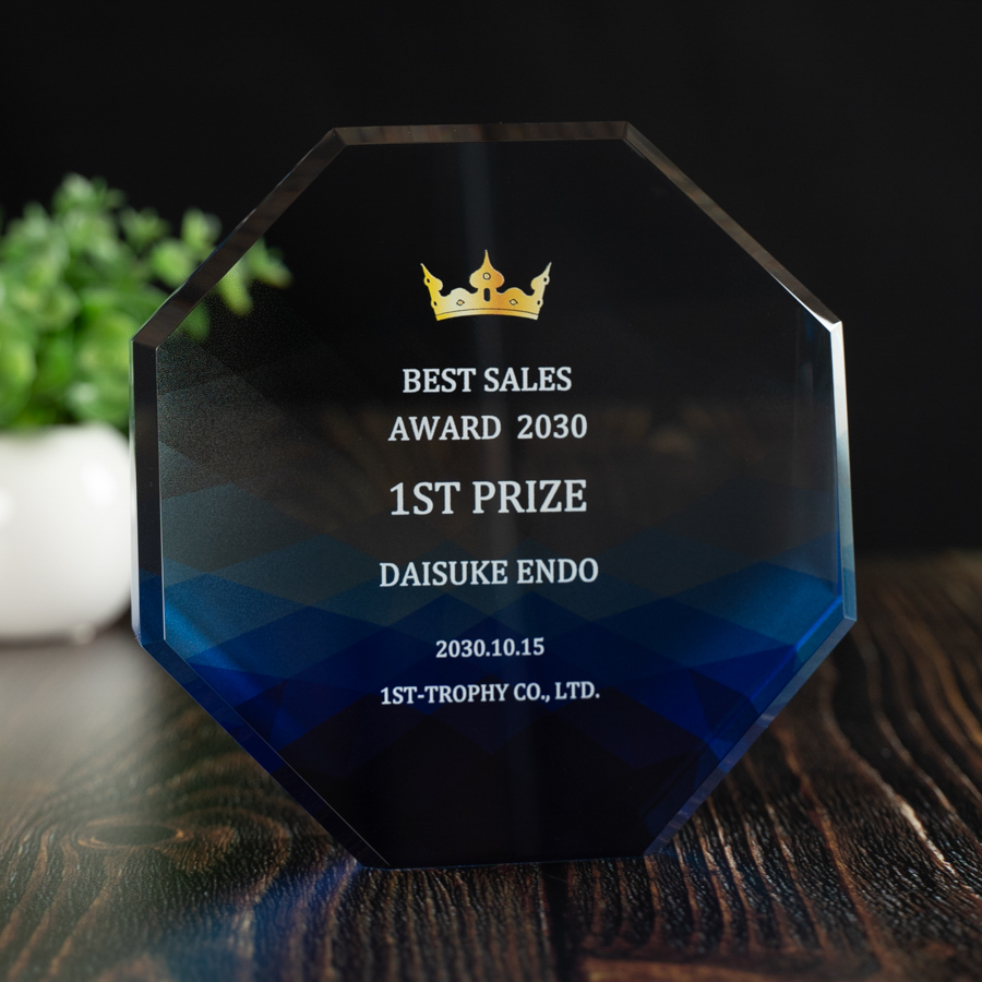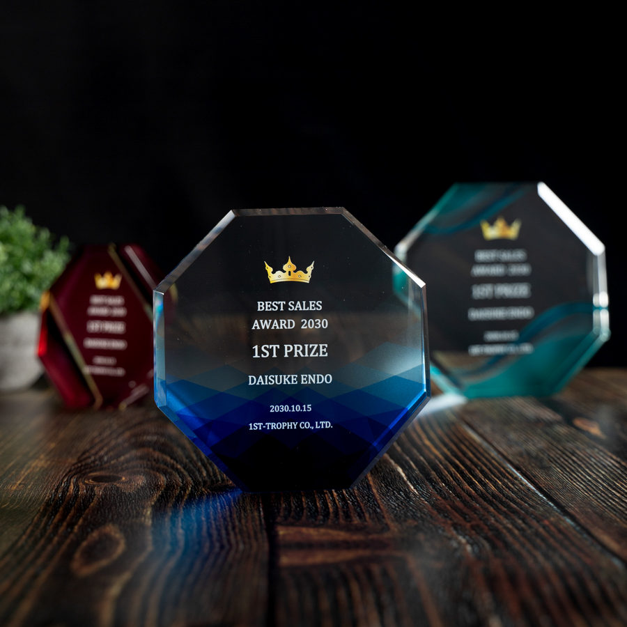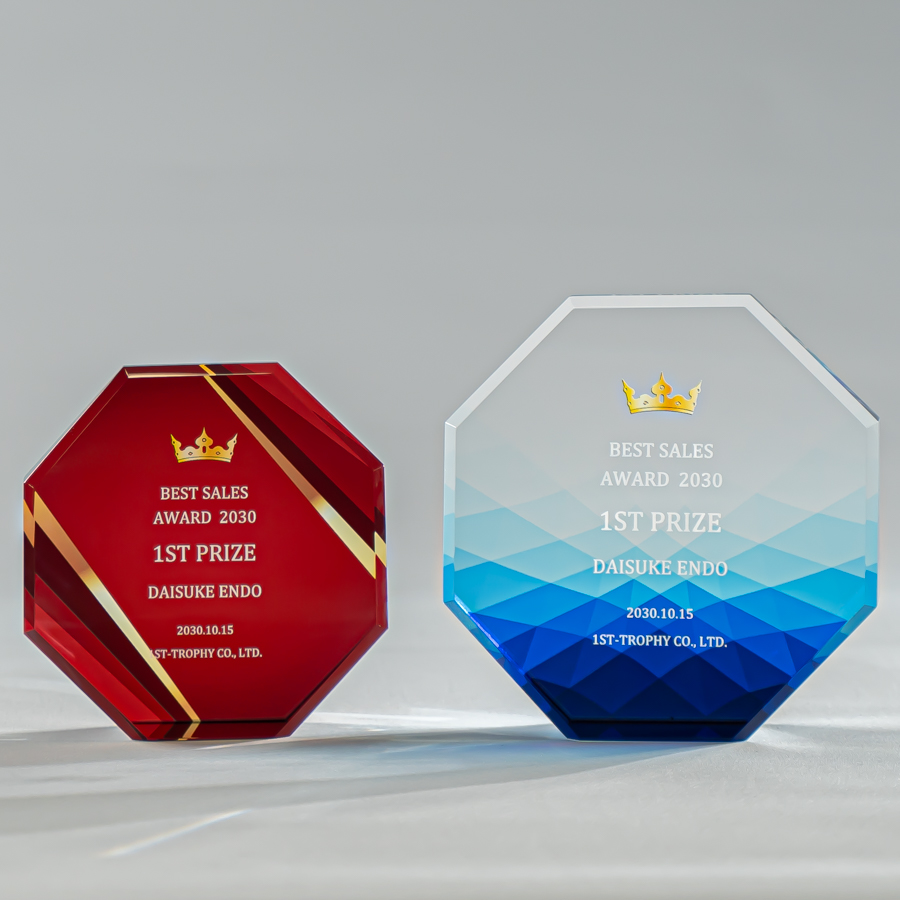 セミオーダー クリスタルトロフィー オリジナル カラー加工【XC-C-0141 Bサイズ】高さ:13.0cm 幅:13.0cm