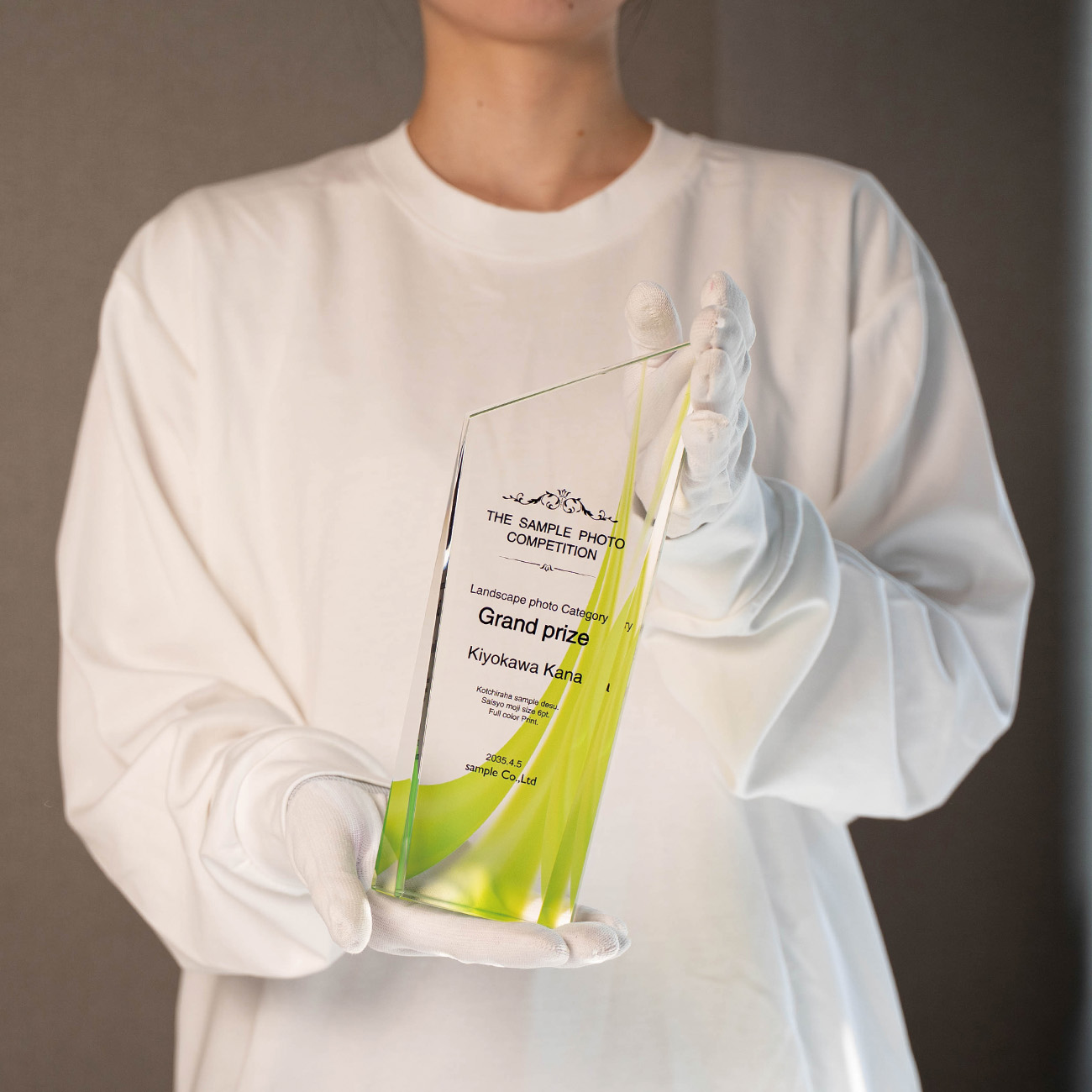 クリスタルトロフィー フルカラー印刷【XC-0193_Lサイズ】高さ:24.5cm 幅:8.8cm《営業日11時までの注文完了>14時までの校了で翌営出荷》