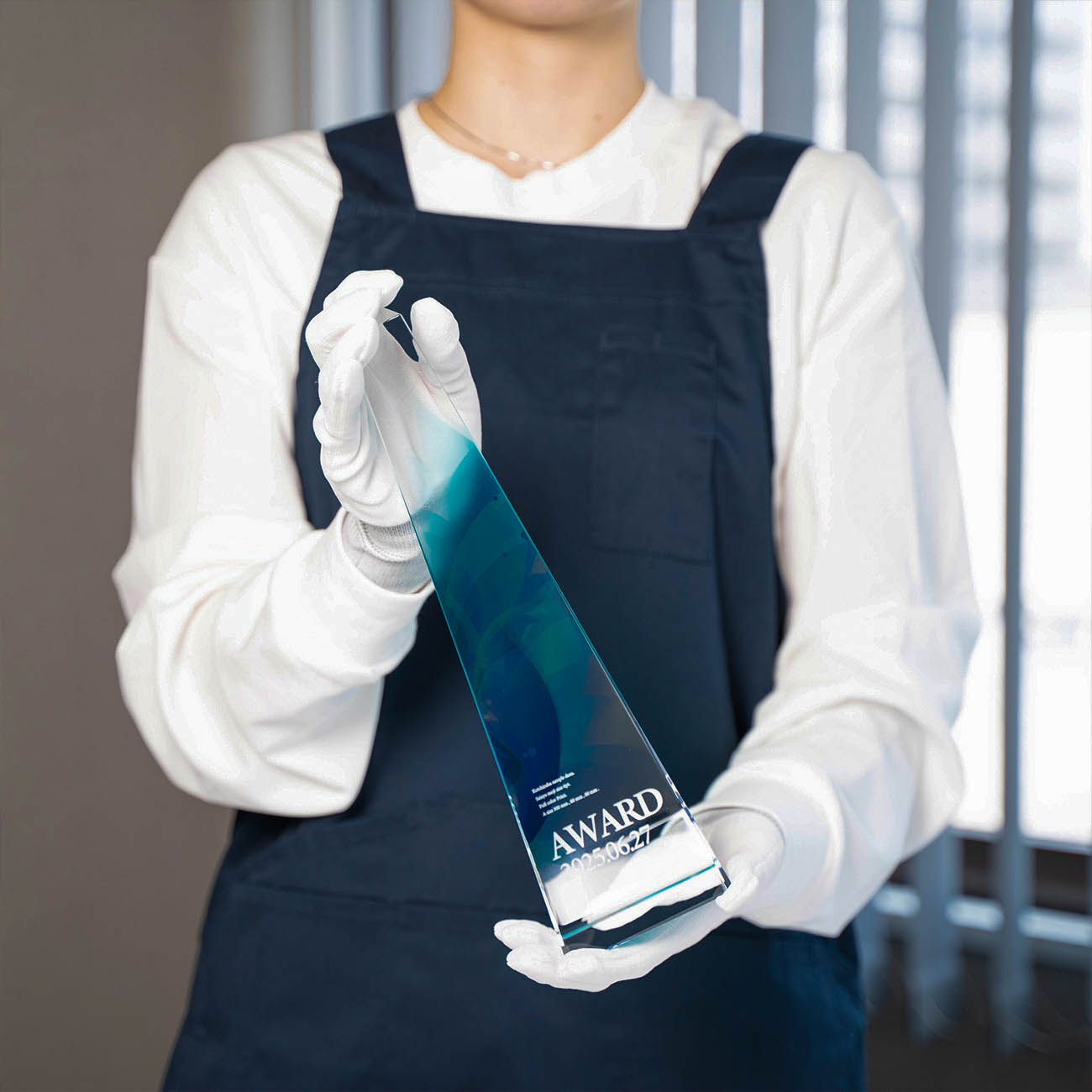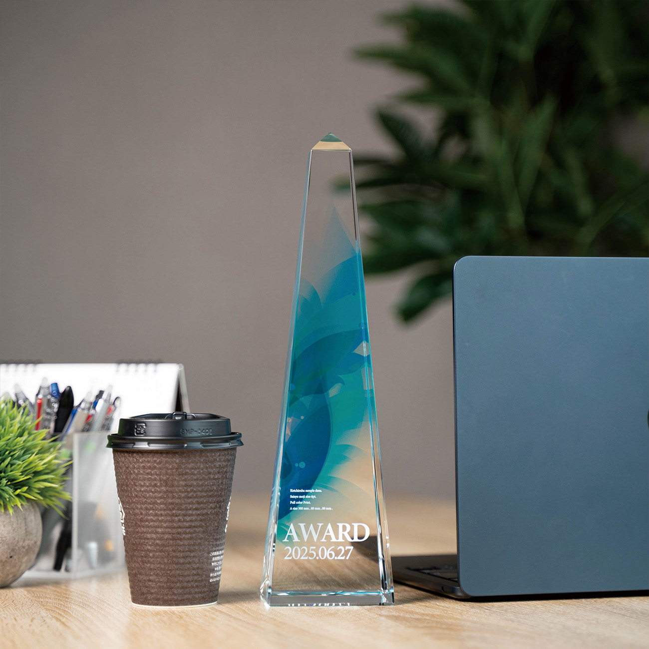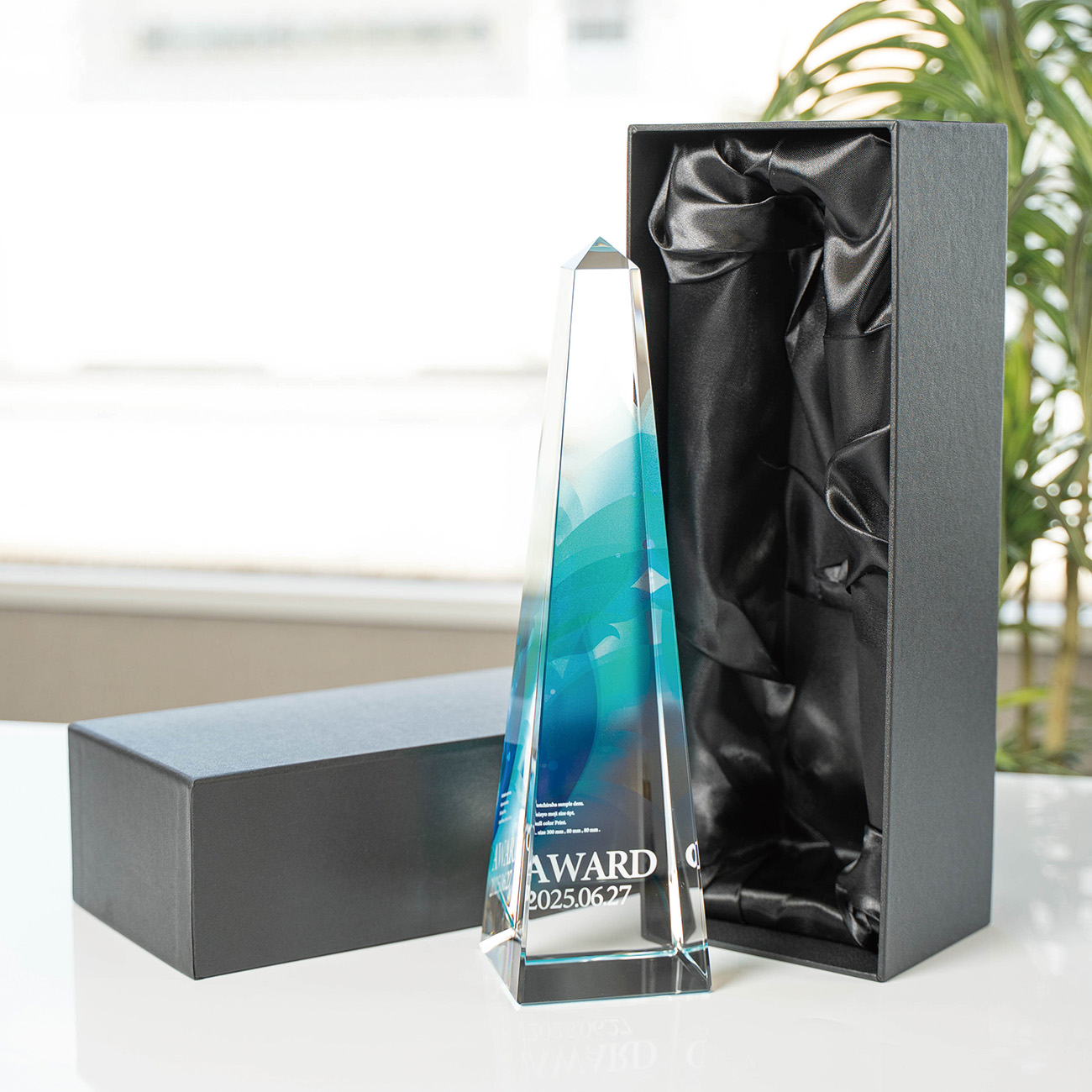 【ファーストトロフィーオリジナル商品】 自社在庫、自社加工で短納期のお届けや急な追加・修正にも対応可能です。 素材:光学ガラス製(クリスタルトロフィーと呼ばれている商品と同じ素材です) 職人の手作業で製造しているため数ミリの個体差があります。若干の気泡が入る場合があります。