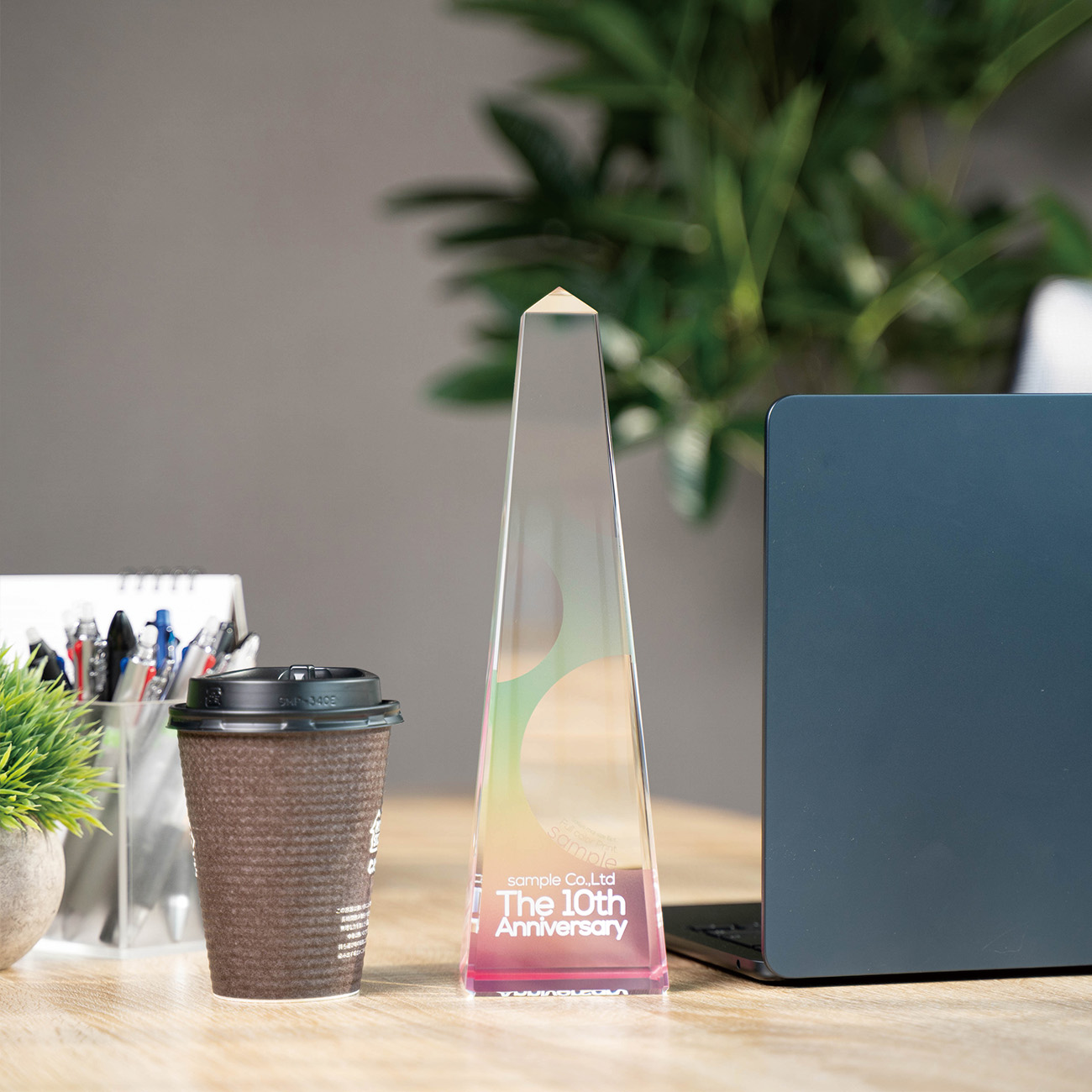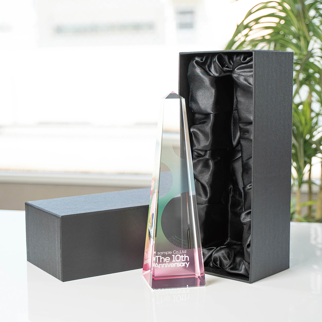 【ファーストトロフィーオリジナル商品】 自社在庫、自社加工で短納期のお届けや急な追加・修正にも対応可能です。 素材:光学ガラス製(クリスタルトロフィーと呼ばれている商品と同じ素材です) 職人の手作業で製造しているため数ミリの個体差があります。若干の気泡が入る場合があります。
