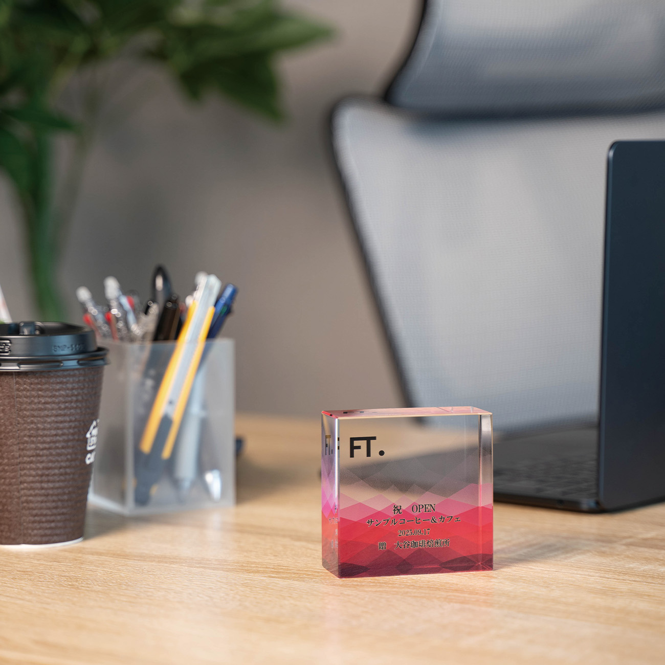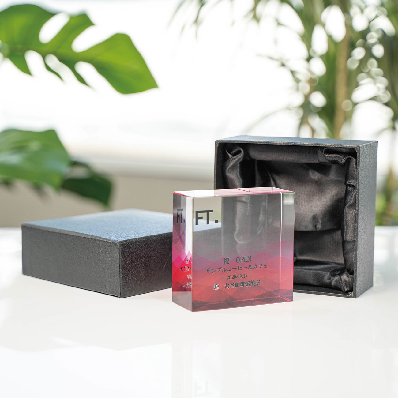 【最短 翌営業日 出荷】セミオーダー高級カラークリスタルトロフィー ガラスにフルカラープリントが可能。高さ:8.0cm 幅:8.0cm 圧倒的な存在感! 本格的なガラストロフィーを低価格で販売。短納期激安通販 社内表彰、企業表彰、各種大会、コンペ優勝者、受賞者の表彰に最適。XC-C-0303_C