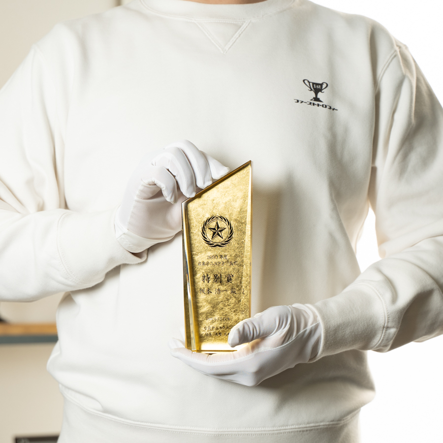 | 製品名: | クリスタルトロフィー 本金箔+フルカラー印刷《XC-G-0193_Bサイズ》(高さ:19.5cm 幅:7.0cm) |