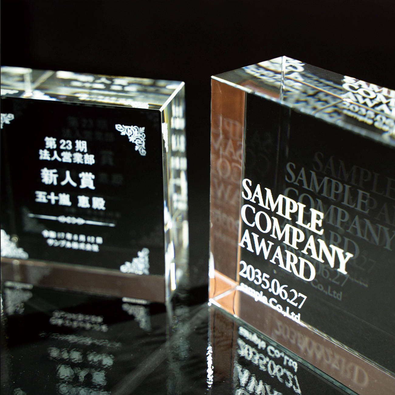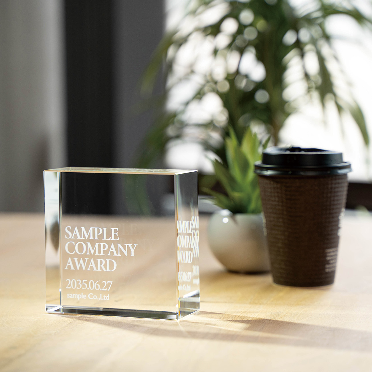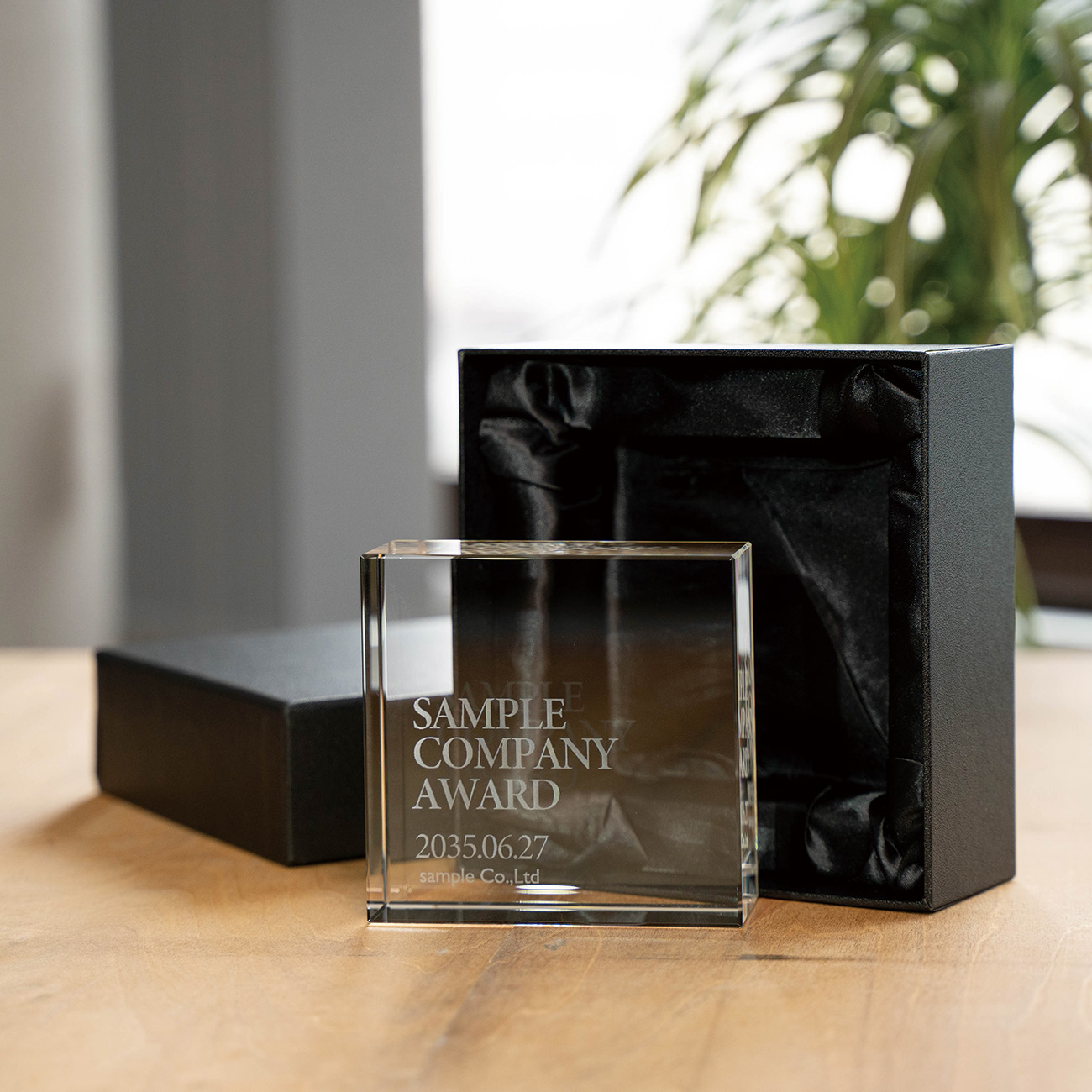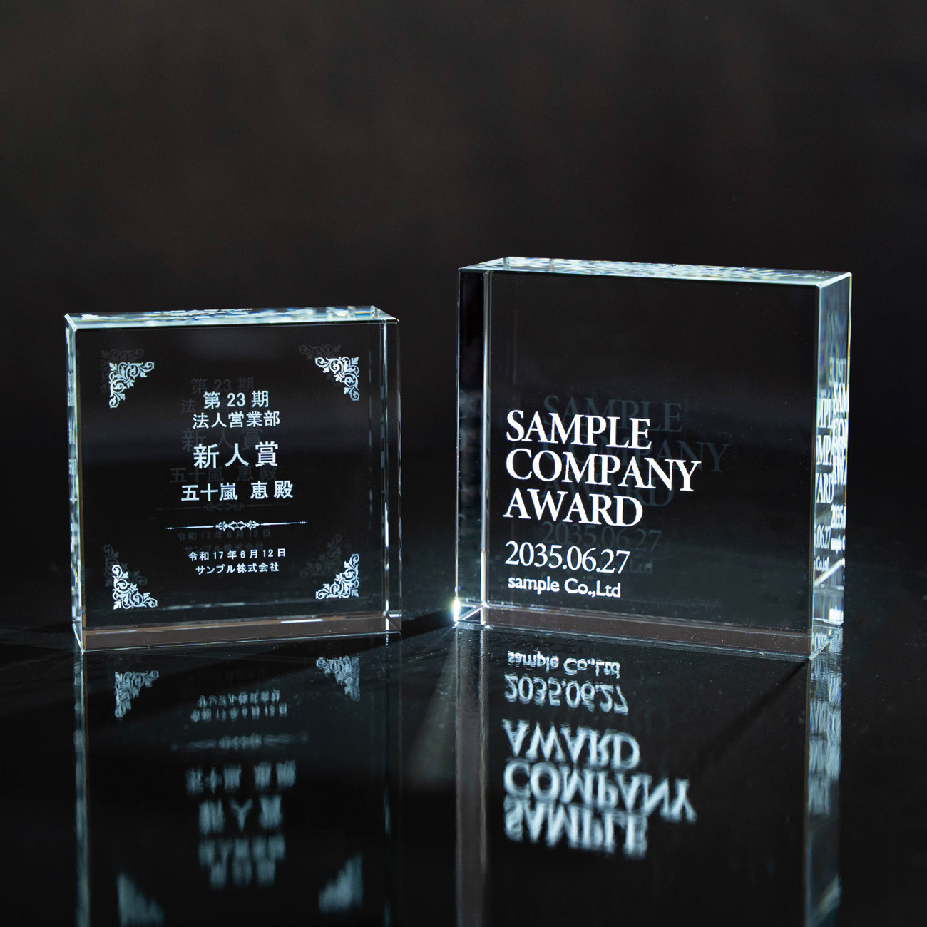クリスタルトロフィー 内部レーザー彫刻【XC-0303_Aサイズ】高さ:11.0cm 幅:11.0cm《営業日11時までの注文完了>14時までの校了で翌営出荷》