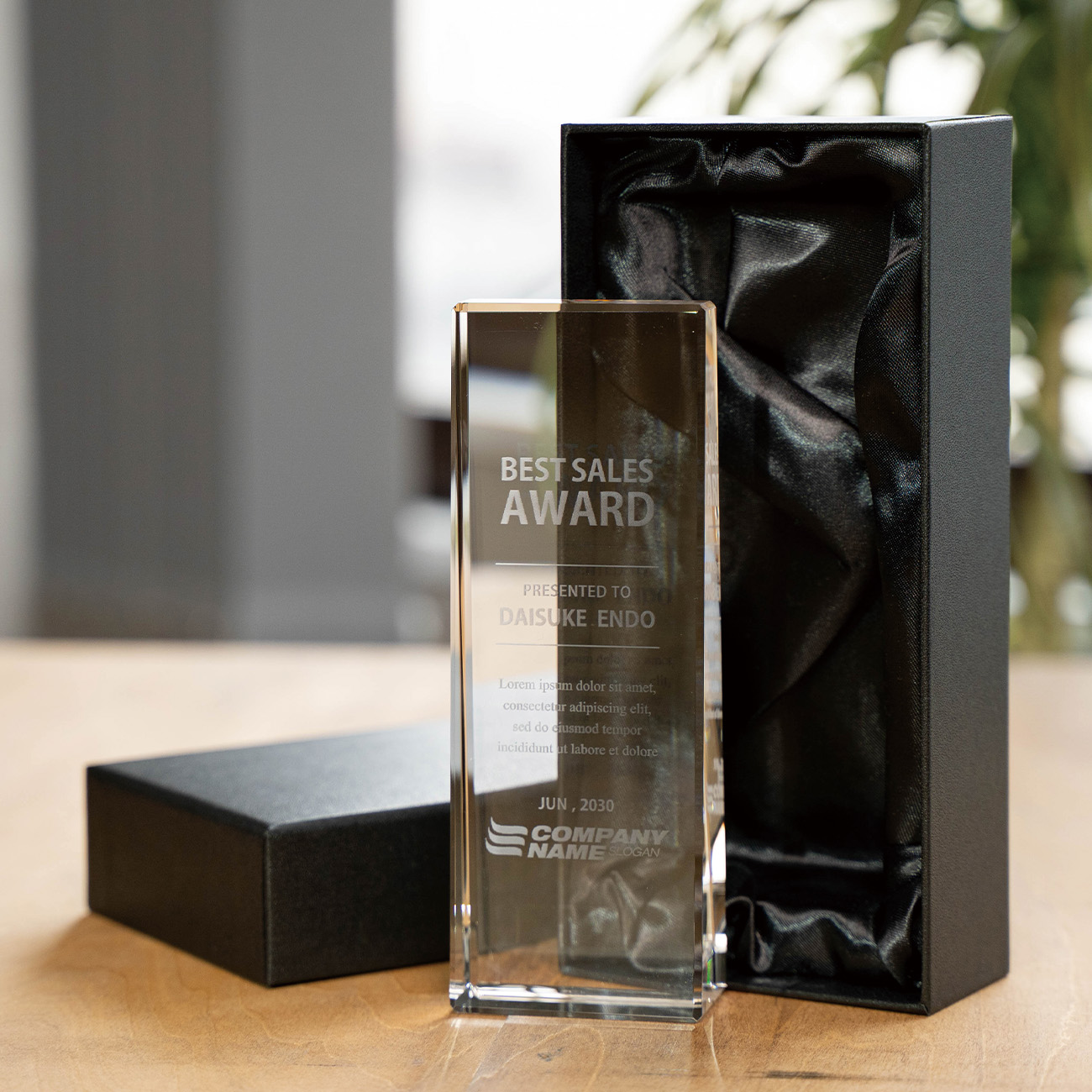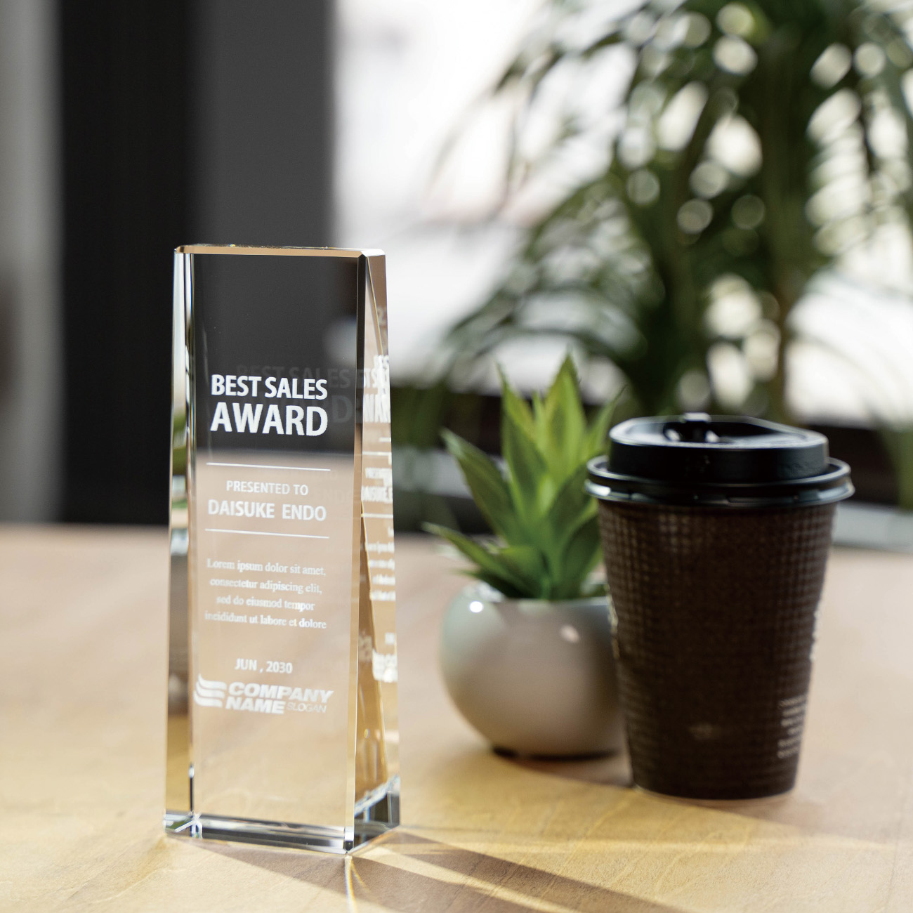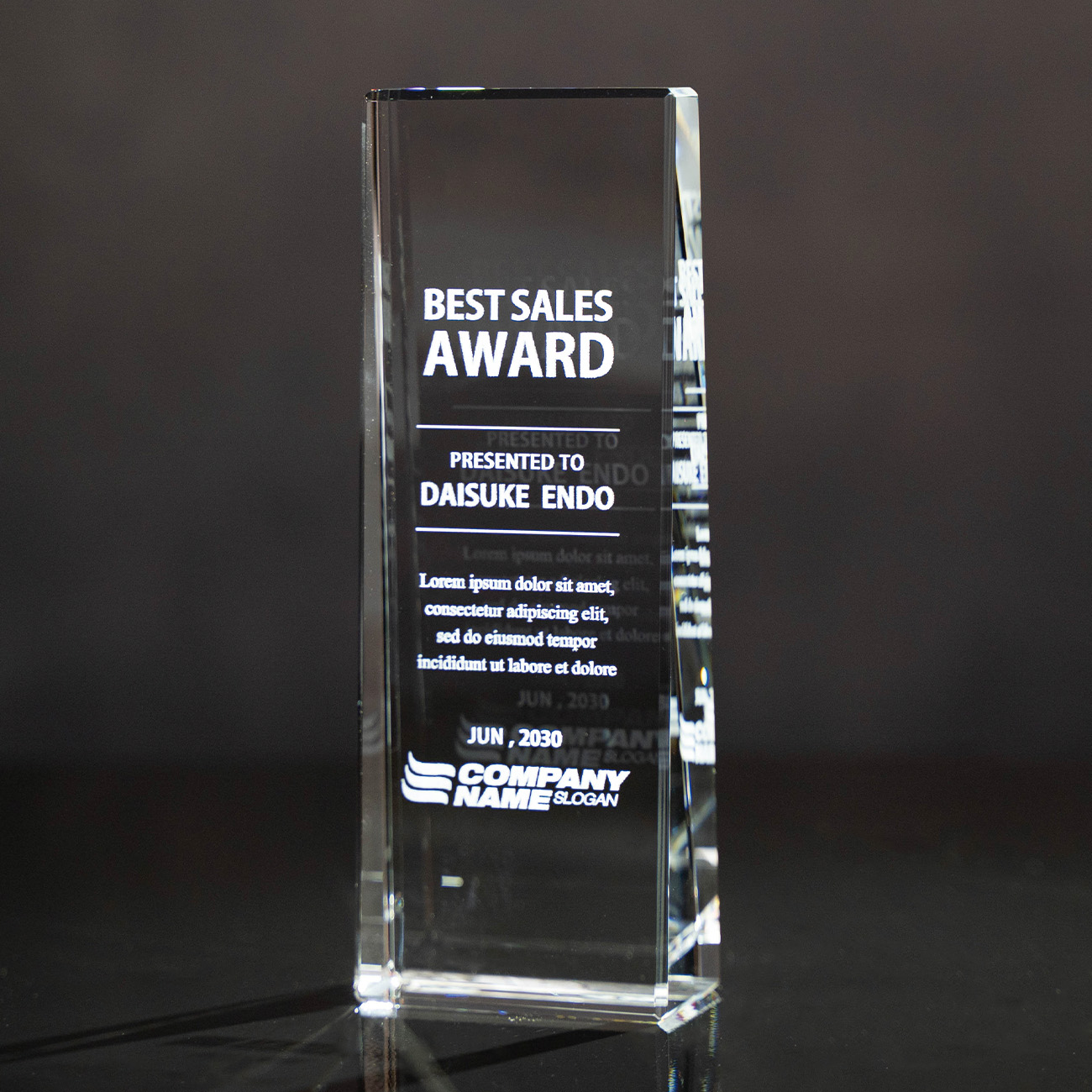 クリスタルトロフィー 内部レーザー彫刻【XC-0304_Bサイズ】高さ:18.0cm 幅:6.5cm《営業日11時までの注文完了>14時までの校了で翌営出荷》