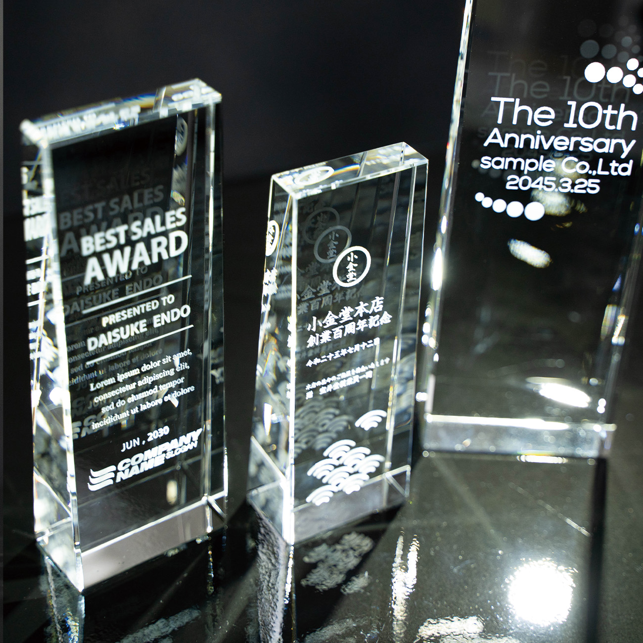 クリスタルトロフィー 内部レーザー彫刻【XC-0304_Cサイズ】高さ:15.0cm 幅:5.5cm《営業日11時までの注文完了>14時までの校了で翌営出荷》