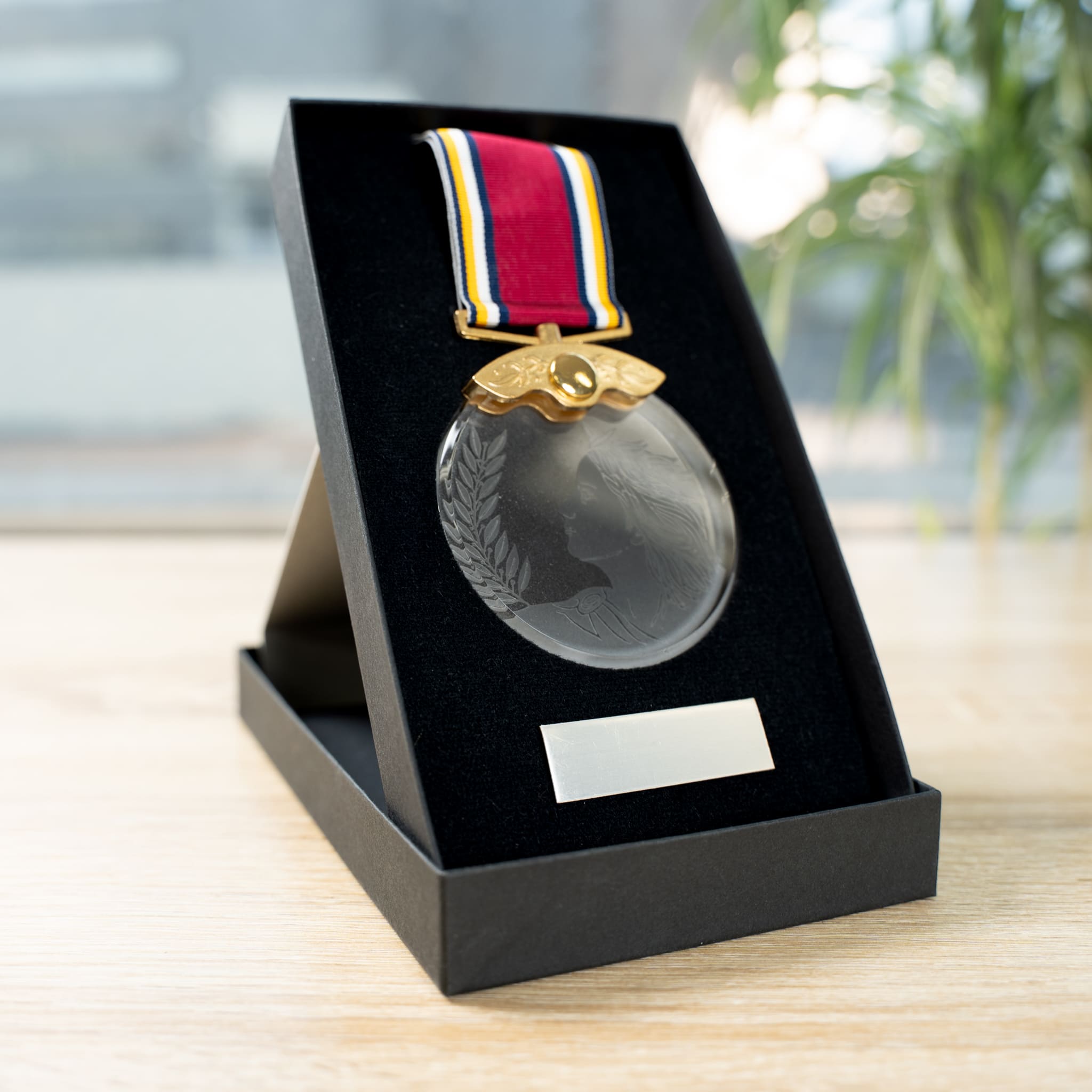 小学生対象のイベントの最優秀賞のメダルとしました。リボン部分,メダル本体とも高級感があって,受賞者にとても喜ばれました。箱にいれて展示できる体裁も素敵でした。