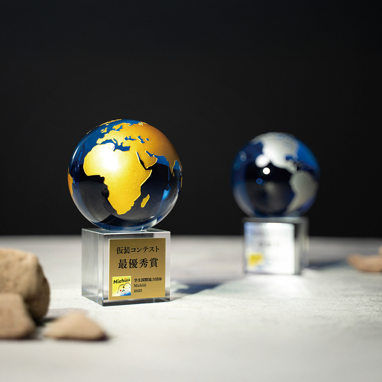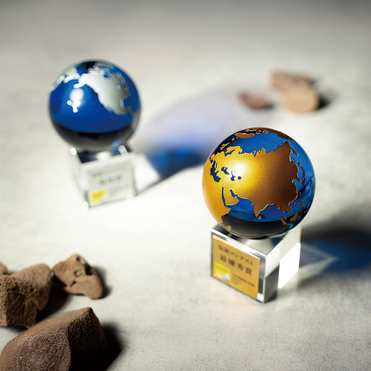 地球型のモチーフのついたトロフィーをご用意いたしました。